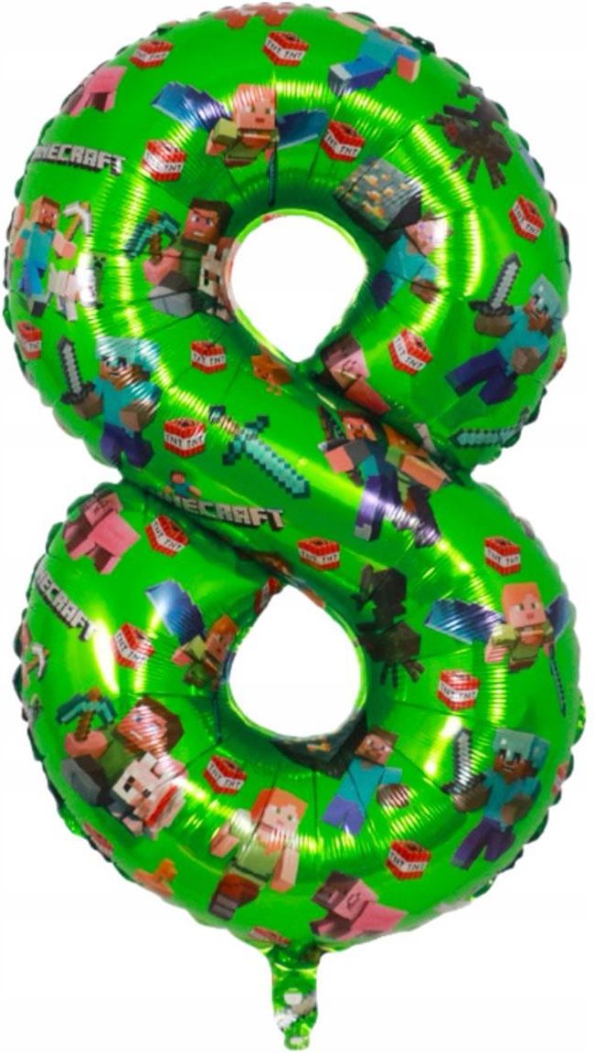 Grajlandia Balon 8 Urodziny Cyfra Osiem Foliowy Zielony 100cm Minecraft Nowy Staw