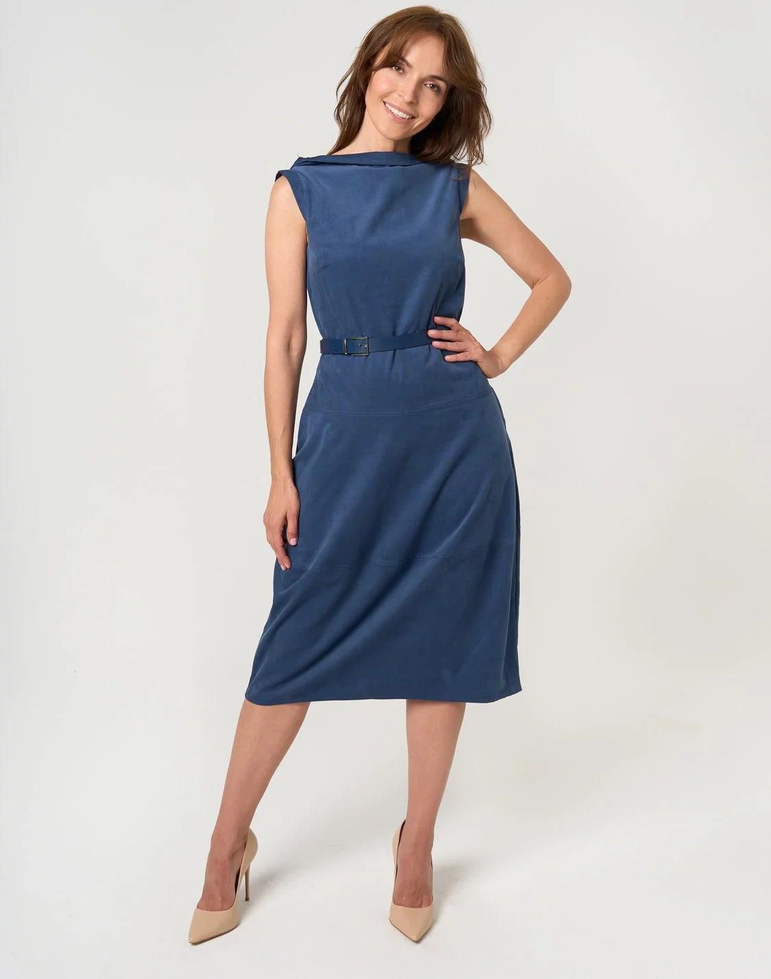 Sztruksowa sukienka MIDI z bawełny Stylowa i wygodna sukienka o prostym, ale efektownym kroju, idealna zarówno na co dzień, jak i na bardziej eleganckie okazje. Wykonana w 100% z wysokiej jakości bawełnianego sztruksu, zachwyca miękkością i komfortem noszenia. Luźniejszy fason z delikatnie podniesionym kołnierzem oraz szerokimi ramiączkami subtelnie podkreśla sylwetkę, nie krępując ruchów. Długość midi oraz praktyczne kieszenie boczne czynią ją wyjątkowo funkcjonalną. Doskonale komponuje się zarówno z eleganckimi sandałkami, jak i casualowymi butami na płaskiej podeszwie. Ta sukienka to uniwersalna propozycja dla kobiet, które cenią sobie połączenie elegancji z codzienną wygodą. Kolor główny: granatowa o sztruksowej fakturze Rodzaj sukienki: rozkloszowana, długość MIDI, dekolt typu łódka, bez rękawków Skład tkaniny wierzchniej: 100% bawełna Gwarancja: 24 m-ce Uszyta w Polsce
