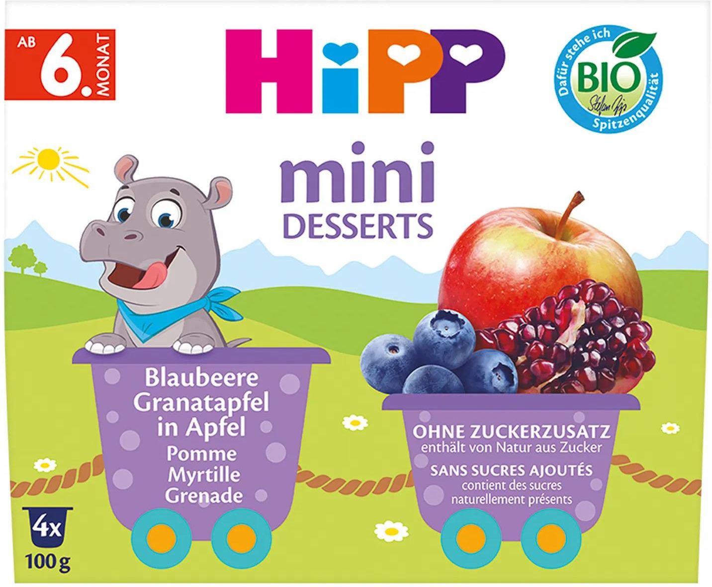 Hipp Mini Deser Bio Jabłka Jagody Granaty Po 6 Miesiącu 4X100G Nowy Staw