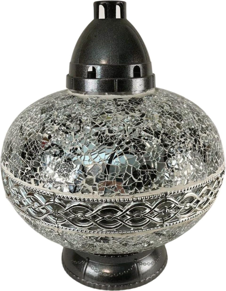 ZNICZ WAZA PREMIUM, RĘCZNIE WYKONANY Wykonany jest z grubego szkła zapewniającego odporność na każde warunki atmosferyczne Unikalny design dający efekt mozaiki zapewnia piękny wygląd znicza Eleganckie wykończenie podstawy oraz kaptura znicza sprawia, że idealnie kompletuje wygląd znicza Dzięki mozaice, podczas palenia, znicz tworzy niespotykany i widowiskowy efekt rozpraszania światła wywołującego wrażenie na każdym. Przeźroczyste okno , pozwala na jeszcze lepszą ekspozycje wkładu i ulepszenie efektu blasku Ręczne wykonanie gwarantuje jakość i długotrwałość naszego produktu Idealnie sprawdzi się z wkładami parafinowymi, jak i elektrycznymi Dane techniczne Wysokość: 36cm Szerokość maksymalna: 21cm Kolor: Czarny/Srebrny Maksymalna wysokość wkładu: 18cm