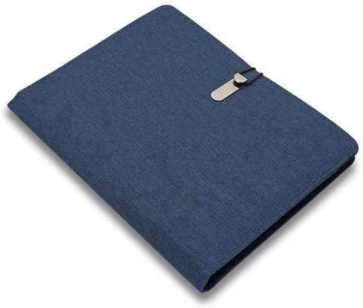 Organizer z wymiennym notesem A5 (64 kartek w kratkę, 70g/m2). Twarda okładka wykonana z tkaniny RPET. Organizer zawiera jedną dużą przegrodę, 3 mniejsze kieszonki, kieszonkę na wizytówki oraz uchwyt na długopis. Teczka zapinana jest na gumkę zaczepianą o metalowy haczyk.