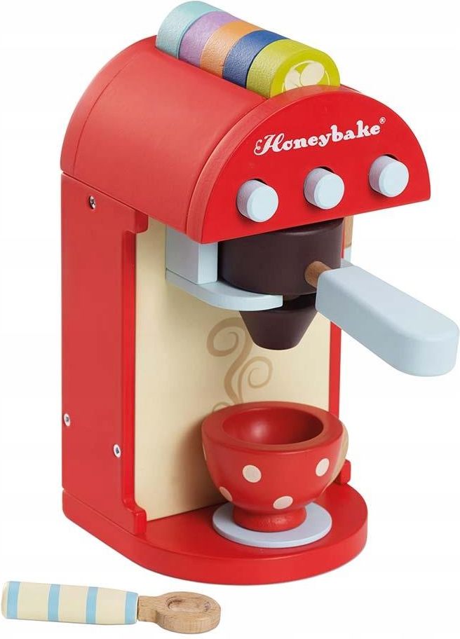 Stylowy czerwony ekspres do kawy z wielokrotnie nagradzanej kolekcji Honeybake, sam ma na koncie wiele nagród m.in. za realizm i frajdę z zabawy. Sprawdzi się w każdej kuchni. Zawiera 5 różnych wariantów kawy zamkniętych w kolorowych kapsułkach, spieniacz do mleka, filiżankę w urocze kropki i łyżeczkę. Zabawka nie zawiera plastiku i stanowi wspaniały, przemyślany prezent na każda okazję. Witaj w domowej kawiarni! Ten realistyczny, wielokrotnie nagradzany zabawkowy ekspres do kawy to jedna z tych zabawek, które nigdy się nie nudzą i z pewnością przypadnie do gustu małym baristom. Z wieloma funkcjami do odkrycia - wyjmowane kapsułki, spieniacz do mleka, wciskane przyciski, kolba z rączką czy pięknie pomalowana filiżanka i łyżeczka zabawa nigdy się nie kończy. Kapsułki można przechowywać na górze maszyny, gdy nie są używane. Każdy element tej uroczej zabawki został wykonany ze zrównoważonego i trwałego drewna z certyfikatem FSC®. Nie zawiera plastiku. Udekorowany złotym detalem, ten czerwony ekspres do kawy został pomalowany przy użyciu nietoksycznych farb na bazie wody i powstał dla długotrwałej, pełnej wyobraźni zabawy, która jest także przyjazna dla naszej planety. Sprawdź pełną gamę drewnianych zabawek i akcesoriów kuchennych, w tym zestaw do herbaty i czajniczek z wielokrotnie nagradzanej kolekcji Honeybake, sprzedawanych osobno. Wszystkie zabawki marki Le Toy Van są projektowane w Wielkiej Brytanii przez doświadczony zespół utalentowanych projektantów i wytwarzane z poszanowaniem etyki oraz bieżących potrzeb środowiska naturalnego. Specyfikacja: Przeznaczone dla dzieci w wieku od 3 lat Wymiary: Szerokość: 11 x Głębokość: 19 x Wysokość: 21 cm Zrobione z drewna certyfikowanego przez FSC® Ekspres do kawy w komplecie z kubkami, kapsułkami i łyżką Nagrodzona zabawka Uniwersalny design Zabawka bez plastiku Surowo przetestowane, aby spełniać najwyższe standardy bezpieczeństwa Udekorowane przy użyciu farb na bazie wody, nietoksycznych Zachęca do kreatywnej zabawy, interakcji społecznej i rozwoju mowy O marce Le Toy Van Misją brytyjskiej marki Le Toy Van jest tworzenie przepełnionych miłością, wyjątkowo pięknych zabawek, które przetrwają próbę czasu i dają naszym pociechom niezrównaną frajdę z zabawy. Zabawki Le Toy Van są wyjątkowe - wytwarzane z drewna i materiałów wyłącznie o zrównoważonym pochodzeniu, wykonane w zgodzie z najsurowszymi standardami europejskimi i amerykańskimi bezpieczeństwa dla dzieci. Marka sprzedaje swoje zabawki na całym świecie, a utalentowany zespół projektantów tworzy je i opracowuje w Wielkiej Brytanii. Firma współpracuje tylko z wykonawcami, którym przyświecają te same ideały i wciąż podnosi poprzeczkę w kwestiach jakości zabawek i standardów ich wykonania. Le Toy Van to marka wielokrotnie nagradzana za jakość, design, bezpieczeństwo, zaangażowanie w środowisko, a także wartość edukacyjną i atrakcyjność zabawy swoich produktów. Zabawki Le Toy Van „występują” w produkcjach wytwórni filmowej Disney, od lat zajmują zasłużone miejsce na szczytach rankingów Vogue, Forbes, GQ, New York Post, The Independent, Glamour i innych. Pomimo tak wielu nagród i wyróżnień Le Toy Van nie spoczywa na laurach i tworzy wciąż coraz lepsze zabawki, które przynoszą radość i magię zabawy dzieciom na całym świecie. Wszystkie zabawki marki Le Toy Van są zbadane w laboratoriach SGS pod kątem zgodności ze standardami ASTM, BS EN-71, EN-71, AUS i CCPSIA.