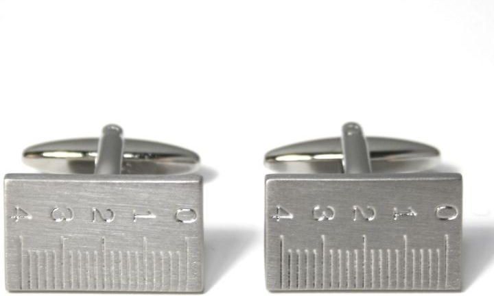 Eleganckie spinki do mankietów kształcie miarki. Model ten znakomicie będzie pasować do większości kolorów garnituru. Natomiast ciekawie będzie połączyć je w stylizacjach gdzie można stworzyć smart casualową stylizację. Długość spinek to 2 cm