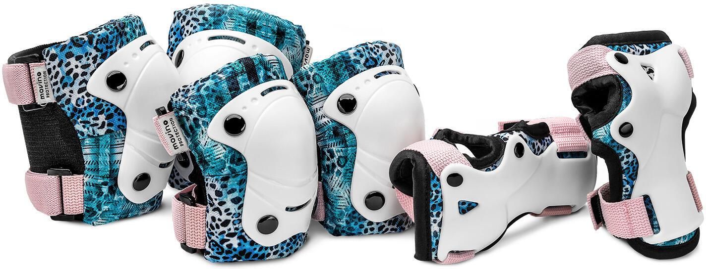 Ochraniacze Movino 3-częściowy zestaw na rolki (8-13 lat) 6 elementów zestawu – ochraniacze na nadgarstki, łokcie i kolana zabezpieczą przed stłuczeniem i zadrapaniem Regulowane zapięcie – zapięcie na rzepy umożliwia szybkie i proste zakładanie oraz zdejmowanie, a wygodna regulacja idealne dopasowanie Forma skarpety – elastyczne ochraniacze gwarantują wygodę i idealne dopasowanie do ciała Miękkie wypełnienie – wnętrze ochraniaczy wykonane jest z miękkiego i miłego w dotyku tworzywa, co znacznie zwiększa komfort ich użytkowania Ciekawe wzornictwo – ochraniacze w pastelowych kolorach zdobione printowanym wzorem warto połączyć z kaskiem Movino o podobnej kolorystyce Ochraniacze Movino nie tylko zwiększają bezpieczeństwo podczas aktywności, jaką jest jazda na rowerze, czy rolkach, ale przy tym doskonale się prezentują. Produkty Movino łączą w sobie niezwykłą dbałość o detale z troską o jak najlepsze parametry. Ochraniacze Movino to doskonały wybór dla starszych dzieci lubiących ruch pod każdą postacią. KONSTRUKCJA ZWIĘKSZAJĄCA BEZPIECZEŃSTWO Zewnętrzna strona ochraniaczy to mocna skorupa odporna na uderzenia, zabezpieczająca przed przykrymi konsekwencjami upadków. Wnętrze ochraniaczy zostało wypełnione miękką otuliną gwarantującą wygodę i zapobiegającą powstawaniu otarć. Anatomiczny kształt i forma „skarpety” zapewniają swobodę ruchów. PRZYJAZNY SYSTEM ZAPINANIA Ochraniacze Movino wyposażone są w regulowane rzepy. Każdy użytkownik łatwo dopasuje je do swoich potrzeb i będzie z nich korzystać przez kolejne sezony. Niewątpliwą zaletą rozwiązania jest możliwość szybkiego i bezproblemowego zapinania, odpinania i regulowania poszczególnych ochraniaczy. NOWOCZESNY DESIGN Marka Movino stawia na oryginalny design i wzornictwo przykuwające uwagę. Ochraniacze dla dzieci wyróżnia stonowana, pastelowa kolorystyka i ciekawy print. Zestaw doskonale prezentuje się w połączeniu z kaskami linii Movino.