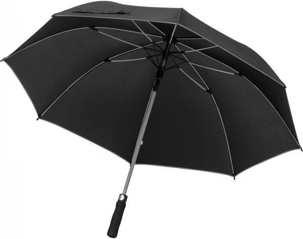 Czarny parasol automatyczny, wykonany z 190T Pongee, z kolorową lamówką oraz stelażem z włókna szklanego.