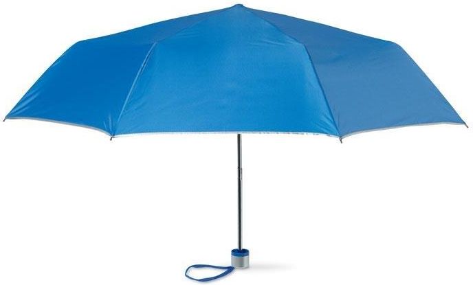 Parasolka składana ręcznie na 3, ze srebrną podszewką wewnątrz. Rozmiar: 21 cali, trzon i końcówki ocynkowane, czarne lakierowane żebra. Srebrna, plastikowa rączka z kolorystycznie dobranym paskiem na rękę. Dobrany kolorystycznie pokrowiec ze srebrną wstawką. Materiał: poliester 190T.