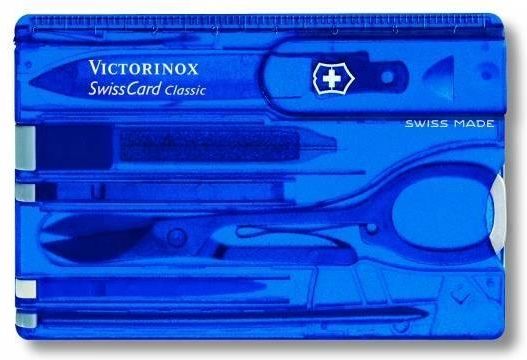 1. Nóż (również do otwierania listów) 2. Pilnik do paznokci ze 3. - Śrubokrętem 4. Nożyczki 5. Pęseta 6. Wykałaczka 7. Długopis ciśnieniowy 8. Szpilka 9. Miarka z podziałką centymetrową 10. Miarka z podziałką calową