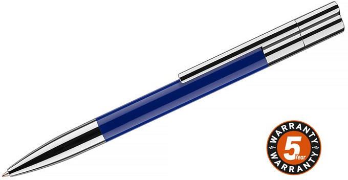 Wykonany ze stali nierdzewnej gustowny długopis wyposażony został w przenośnią pamięć USB o pojemności 16 GB. Pamięć umieszczona została nad klipem długopisu. Standard usb: 2.0; szybkość zapisu: 4,0 MB/s; szybkość odczytu: 12,0 MB. Szczegóły produktu: Wymiary : 134 x ⌀ 10 mm Materiał: metal Kolor: SREBRNO-GRANATOWY