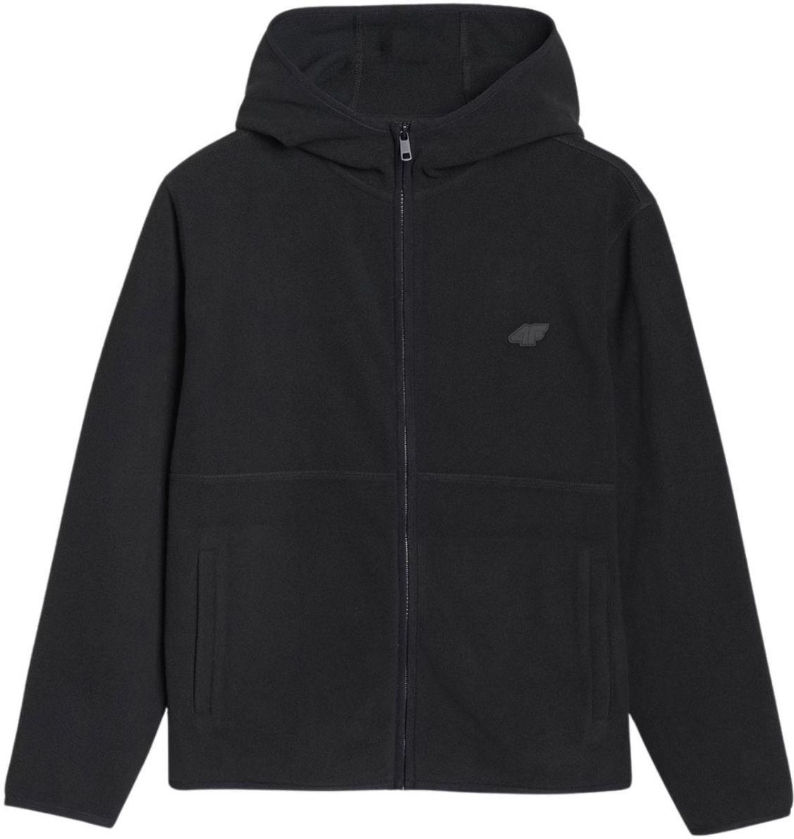 Damska bluza polarowa z kapturem firmy 4F model: 4FWMM00TFLEF315 kolor: Czarny 20S Damska bluza polarowa 4F z kapturem to funkcjonalne i wygodne rozwiązanie na chłodniejsze dni. Dzięki swoim właściwościom termoizolacyjnym sprawdzi się zarówno jako dodatkowa warstwa docieplająca zimą, jak i samodzielna odzież wierzchnia w okresie przejściowym. Idealna na co dzień, a także podczas aktywności sportowych takich jak trekking, snowboard czy jazda na nartach. Wykonana z mikropolaru o średniej gramaturze 220 gsm, jest lekka, miękka w dotyku i jednocześnie dobrze zatrzymuje ciepło. Struktura materiału oparta na mikrorurkach wypełnionych powietrzem zapewnia izolację i oddychalność, a właściwości hydrofobowe sprawiają, że polar szybko schnie i nie gniecie się. Bluza posiada krój regular, który wygodnie dopasowuje się do sylwetki, oraz standardową długość do bioder. Wygodny kaptur, stójka oraz elastyczne wykończenia mankietów zwiększają komfort użytkowania. Dwie kieszenie boczne i jednokierunkowy zamek dodają funkcjonalności. Zastosowana technologia 4FWarm wspiera utrzymanie odpowiedniej temperatury ciała, zapewniając ciepło i komfort przez cały dzień. PARAMETRY TECHNICZNE Skład materiału: 100% poliester Krój: regular – dopasowany, wygodny w noszeniu Gramatura: średnia 220 gsm – lekka, a zarazem ciepła Technologia 4FWarm – wspiera komfort cieplny Materiał szybkoschnący i oddychający Wnętrze z miękkiego mikropolaru Stójka z nieodpinanym kapturem bez regulacji Elastyczne wykończenie mankietów 2 kieszenie boczne otwarte Zapinana na jednokierunkowy zamek główny Standardowa długość do bioder