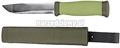 Nóż Morakniv 2000 oliwkowy stal nierdzewna (S) MORA 10629 Green Olive Mora 2000 to bardzo popularny i uniwersalny nóż, szwedzkiej marki Mora. Nóż doskonale sprawdzi się jako narzędzie do wszelkiej aktywności outdoorowej, bez względu na to, czy jesteśmy pasjonatami survivalu, bushcraftu, czy trekkingu. To doskonały pomysł na prezent. Mora 2000 to wysokiej klasy nóż o wszechstronnym zastosowaniu - uniwersalne narzędzie przeznaczone dla myśliwych, wędkarzy oraz wszystkich, którzy spędzają czas aktywnie na łonie przyrody. Wersja w zielonym oliwkowym wariancie kolorystycznym, doskonale wtapia się w otoczenie podczas wypadu w teren. Głownię o długości 109 mm wykonano ze stali nierdzewnej typu Sandvik zahartowanej do twardości HRC 57-58, a profil szlifowania ostrza zapewnia optymalne działanie noża. Dzięki odpowiedniej twardości, odporności na ścieranie i korozję, klinga ze stali Sandvik dosyć długo trzyma ostrość i łatwo ją wyostrzyć nawet w warunkach terenowych. Ergonomicznie wyprofilowana rękojeść została wykonana z wytrzymałego tworzywa i pokryta gumą TPE, co zapewnia komfort i pewność chwytu nawet w sytuacji, gdy dłoń jest mokra lub zabrudzona. Guma nie przewodzi zimna więc praca z nożem jest bezpieczna i komfortowa o każdej porze roku. Wewnątrz rękojeści, wtopiony jet trzpień będący przedłużeniem głowni. W komplecie znajduje się praktyczna pochewka z wytrzymałego tworzywa, z możliwością mocowania do pasa za pomocą skórzanej pętli. Zarówno nóż, jak i pochewka, dzięki swojej prostej budowie są niezwykle łatwe do utrzymaniu w czystości. Cechy produktu typ noża: stała klinga - hidden tang przeznaczenie: ogólnoużytkowe, EDC (Every Day Carry) profil głowni: Clip Point typ szlifu: płaski typ stali ostrza: stal nierdzewna Sandvick 12C27 twardość stali [HRC]: 57-58 materiał rękojeści: tworzywo sztuczne - polimer + guma TPE materiał pochewki: tworzywo sztuczne - polimer odporność na korozję: wysoka odporność na stępienie: dobra długość całkowita: 224 mm długość głowni: 109 mm grubość głowni: 2,5 mm waga: 140 g producent (marka): Mora, Szwecja model: 10629 okres gwarancyjny: 24 miesiące kod produktu: 176-005 MORA OF SWEDEN pojawiła się na międzynarodowym rynku w 2005 roku, jednak korzenie firmy sięgają do lat 1912 i 1891 - kiedy to dwie manufaktury nożowe Mora - KJ Eriksson i Frost's Knife połączyły się w spółkę. Zjednoczenie doprowadziło do rozszerzenia asortymentu oraz zdolności do uruchamiania wielu projektów, co z kolei przyczyniło się do dalszego rozwoju firmy. Dzięki temu Mora jest firmą ze 100-letnim doświadczeniem w produkcji narzędzi tnących. Noże oraz pozostałe narzędzia MORA są stosowane w różnych dziedzinach, a osoby, które ich używają mają jedną wspólną cechę: chcą narzędzi, które upraszczają pracę, są łatwe w obsłudze, i zostały zaprojektowane z zastosowaniem wysokiej ergonomii. Produkty MORA znajdują się na budowach i w zakładach pracy, są wykorzystywane podczas polowania, łowienia ryb i spędzania czasu na świeżym powietrzu.