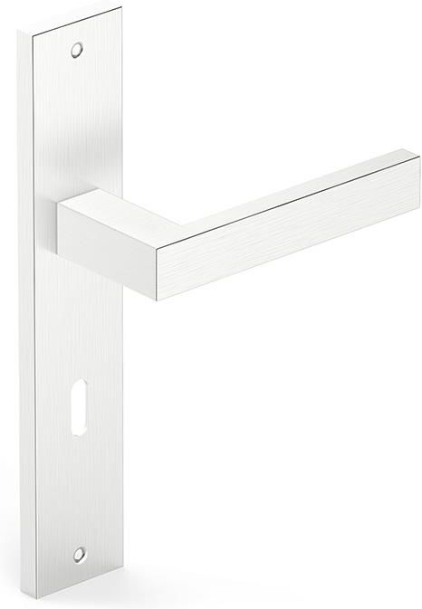 Nowoczesna, kwadratowa klamka do drzwi z podłużnym szyldem wpisująca się w obowiązującą modę na proste, minimalistyczne wzornictwo. Dzięki odpowiednio dobranym proporcjom klamka dobrze leży w dłoni podczas użytkowania. Metalem użytym do produkcji klamki jest stal nierdzewna (INOX) w wykończeniu …