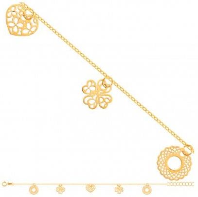 Piękna Złota Modna Bransoletka Gwiazd i Celebrytek !!!o Ankrowym Mocnym SplocieBransoletka Zdobiona Zawieszkami w Kształcie Serca,Koniczynek i Dwóch Kółeczek AżurowychNajnowszy Trend - Noszony Przez Gwiazdy. Delikatna i Elegancka !! Próba 585 Waga - 0,91 g. Długość - z regulacją 15,5 cm. + …