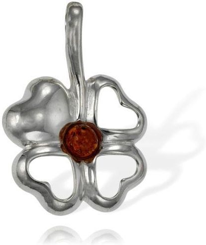 Norbisrebro Srebrny Oksydowany Wisiorek Czterolistna Koniczyna Koniczynka z Bursztynem Bursztynami Nowy Targ