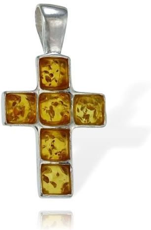 Norbisrebro Srebrny Piękny Wisiorek Krzyż Krzyżyk z Bursztynem z Bursztynami Nowy Targ