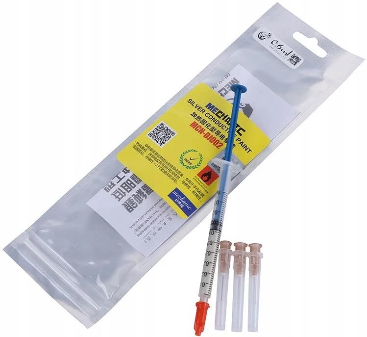 Pasta elektroprzewodząca Mechanic MCN-DJ002 + 3 igły ✅ Pojemność 0,2 ml: Pasta o pojemności 0,2 ml przeznaczona do punktowych napraw elektronicznych. ✅ 100% Przewodność Elektryczna: Po odparowaniu rozpuszczalnika pasta zapewnia 100% przewodność elektryczną w miejscu połączenia, charakteryzując się …