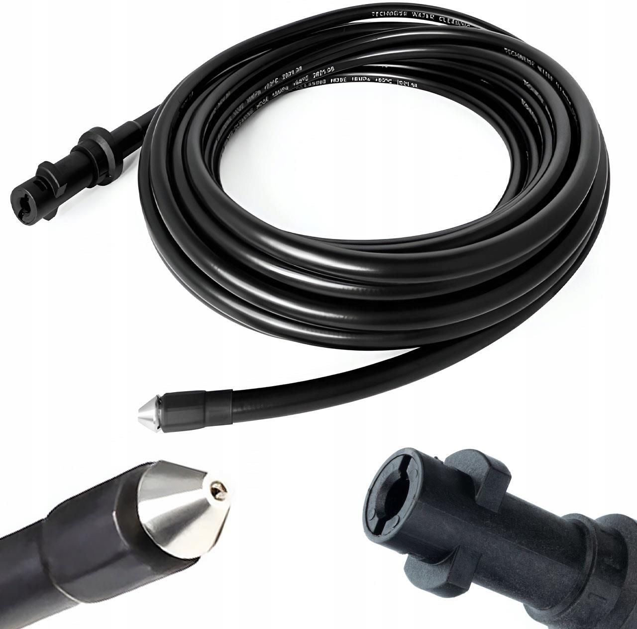 Wąż do czyszczenia kanalizacji 40m Karcher seria K z dyszą 1+3 i taśmą teflonową Długość 40 metrów – maksymalny zasięg działania: Idealny do czyszczenia długich i trudno dostępnych przewodów kanalizacyjnych, odpływów czy rur deszczowych. Dzięki takiej długości wąż z łatwością dociera do miejsc, które są niedostępne dla krótszych modeli. Sprawdzi się zarówno w pracach domowych, jak i profesjonalnych. Uniwersalne złącze Bayonet: Szybkie i szczelne podłączenie do myjek ciśnieniowych Kärcher z serii K (K2, K3, K4, K5, K6, K7). Nie wymaga dodatkowych adapterów, co gwarantuje prostotę obsługi i stabilność podczas pracy. Zaawansowana dysza kanalizacyjna 1+3 – skuteczne i wydajne czyszczenie: Precyzyjny otwór z przodu: Silny, skoncentrowany strumień wody skierowany w przód dyszy umożliwia rozbijanie nawet najbardziej uporczywych zatorów, takich jak tłuszcz, osady wapienne, błoto czy pozostałości organiczne. Trzy otwory z tyłu: Strumienie wody pod kątem skierowane do tyłu generują siłę odpychającą, dzięki której wąż automatycznie „wciąga się” głębiej w rurę. To znacząco redukuje konieczność ręcznego popychania i usprawnia manewrowanie wewnątrz rurociągu. Efekt czyszczenia 360°: Dzięki rozkładowi strumieni woda dokładnie płucze ścianki rur, pozostawiając je czyste i drożne na całej długości. Odporność na intensywną eksploatację: Wąż wykonany z wysokiej jakości materiałów jest odporny na uszkodzenia mechaniczne, wysokie ciśnienie (do 160 bar) oraz działanie chemikaliów stosowanych do czyszczenia. Konstrukcja pozwala na bezpieczne użytkowanie w temperaturach do 60°C. Elastyczny i trwały: Nylonowy oplot zapewnia optymalną elastyczność, pozwalając na swobodne manewrowanie nawet w wąskich i zakrzywionych przestrzeniach rur. Dodatkowe zabezpieczenie tulei przy zakuciu węża chroni przed jego uszkodzeniem podczas intensywnej pracy. Wszechstronne zastosowanie: Idealny do udrażniania kanalizacji, rur drenażowych, instalacji odpływowych oraz usuwania zatorów powstałych w przewodach wodnych. Może być również wykorzystywany do rozkuwania lodu w zamarzniętych rurach. Taśma teflonowa: Szybkie i skuteczne uszczelnienie połączeń gwintowanych. Dzięki niej masz pewność, że instalacja będzie szczelna, bez ryzyka wycieków czy spadków ciśnienia. Specyfikacja: Długość węża: 40 m Ciśnienie maksymalne: 160 bar Temperatura maksymalna: 60°C Przyłącze: Bayonet Kärcher Typ dyszy: 1 z przodu + 3 z tyłu Kompatybilność: Kärcher K2, K3, K4, K5, K6, K7 Niekompatybilny z serią HD i HDS Końcówka węża wyposażona jest w uniwersalny gwint 1/4 cala, co pozwala na łatwe podłączenie różnych adapterów, kompatybilnych z wieloma modelami myjek ciśnieniowych obecnych na rynku. Dzięki temu jeden wąż może stać się wszechstronnym narzędziem do wielu zastosowań! Zaprojektowany z myślą o maksymalnej skuteczności i wygodzie użytkowania, ten wąż do kanalizacji to niezawodne narzędzie, które poradzi sobie nawet z najtrudniejszymi zatorami.