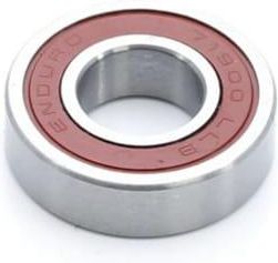 Enduro łożysko Abec 5 Angular Contact 71900 LLB 10x22x6 Model: ABEC 5 Angular Contact Typ łożyska: 71900LLB Uszczelka: LLB Wymiary: 10x22x6mm Materiał: Stal Łożyska Abec 5 Łożyska zawierające chromowe kulki z klasą krągłości 5. Tak precyzyjne łożyska występują np. dla potrzeb wojskowych, w sprzęcie wysoce precyzyjnym. Parametr twardości dla kulek to R-64 pokazuje, że mamy do czynienia z niezwykle trwałym materiałem, wysoce odpornym na zużycie. Bieżnie ze stali chromowej 52100 z wysoką zawartością węgla (twardość w skali Rockwella - R-62). W wyniku procesu odgazowania próżniowego uzyskuje się czystą chromową stal stopową, dodatkowo hartowaną, dzięki czemu uzyskuje się twardy i niezwykle wytrzymały materiał. Bieżnie są wypolerowane do lustrzanego wykończenia, gwarantując cichą pracę łożyska. Uchwyty kulkowe wykonane z grafitu / nylonu. Nylon z elementami grafitowymi gwarantuje niemal brak tarcia, zapewniając jednocześnie ciągłe smarowanie. Aby spełnić wymagania normy ABEC-5, konstrukcja łożyska musi przejść wszystkie testy, w tym testy hałasu przy wysokich prędkościach obrotowych, skrajnie wąskie tolerancje dla wymiaru wewnętrznego (ID) i zewnętrznego (OD) łożyska, okrągłość kulki, precyzyjność wykonania bieżni oraz oczywiście testy na precyzyjne wykonanie powierzchni kulek oraz bieżni Łożyska Angular Contact Są to łożyska z kątowym kontaktem, produkowane specjalnie do piast oraz sterów. W standardowych łożyskach tylko 3 lub 4 kulki stykają się podczas obciążenia w dowolnym momencie. W łożyskach Angular Contact (A/C), WSZYSTKIE kulki są sprzęgnięte i rozpraszają siłę na większej powierzchni, efektem czego jest zmniejszenie tarcia i minimalizacja zużycia. Położenie łożysk może być regulowane z zewnątrz piasty, co daje lepszą możliwość regulacji, co ułatwia korzystanie z hamulców tarczowych. Uszczelnienie Enduro typu LLB Najbardziej popularny rodzaj uszczelnienia marki Enduro to guma z materiału nitrylowego ze stalową wkładką. Zamiast standardowego uszczelnienia typu 2RS, marka Enduro poszła o krok dalej, tworząc specjalny kształt rowka po wewnętrznej stronie bieżni, dzięki czemu uszczelka obraca się, nie zwiększając przy tym oporów toczenia. Zamiast jednej grubej warstwy uszczelniającej, typ LLB wykorzystuje dwie cienkie osłony uszczelniające w rowku przy lekkim kontakcie z nim. Zewnętrzna osłona zatrzymuje wodę i zanieczyszczenia, a osłona wewnętrzna zatrzymuje smar w celu zapewnienia płynnego działania. Wydłuża to w efekcie odstępy czasowe w jakich wymagany jest przegląd w serwisie rowerowym. Kod producenta: EB8815