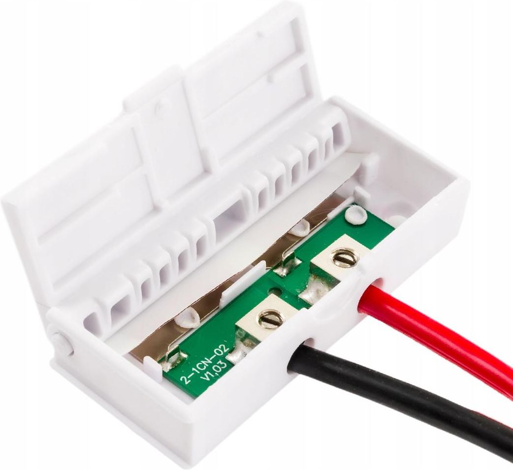 Konektor do super płaskich kabli Spacetronik adapter do kabla SKU: KFWC60 Najważniejsze zalety Szybkie połączenie: Wystarczy wsunąć taśmę, kabelki przykręcić śrubami, zamknąć obudowę i gotowe Otwory mocujące: Ułatwiają montaż adaptera do ściany za pomocą dwóch wkrętów. Biała osłona: Estetyczna i trwała osłona, która doskonale komponuje się z każdym wnętrzem. Kompaktowe wymiary: Adapter ma wymiary zaledwie 63mm x 13mm x 30mm. Adapter do podłączenia kabla: Pasuje do kabli o średnicy do 4mm