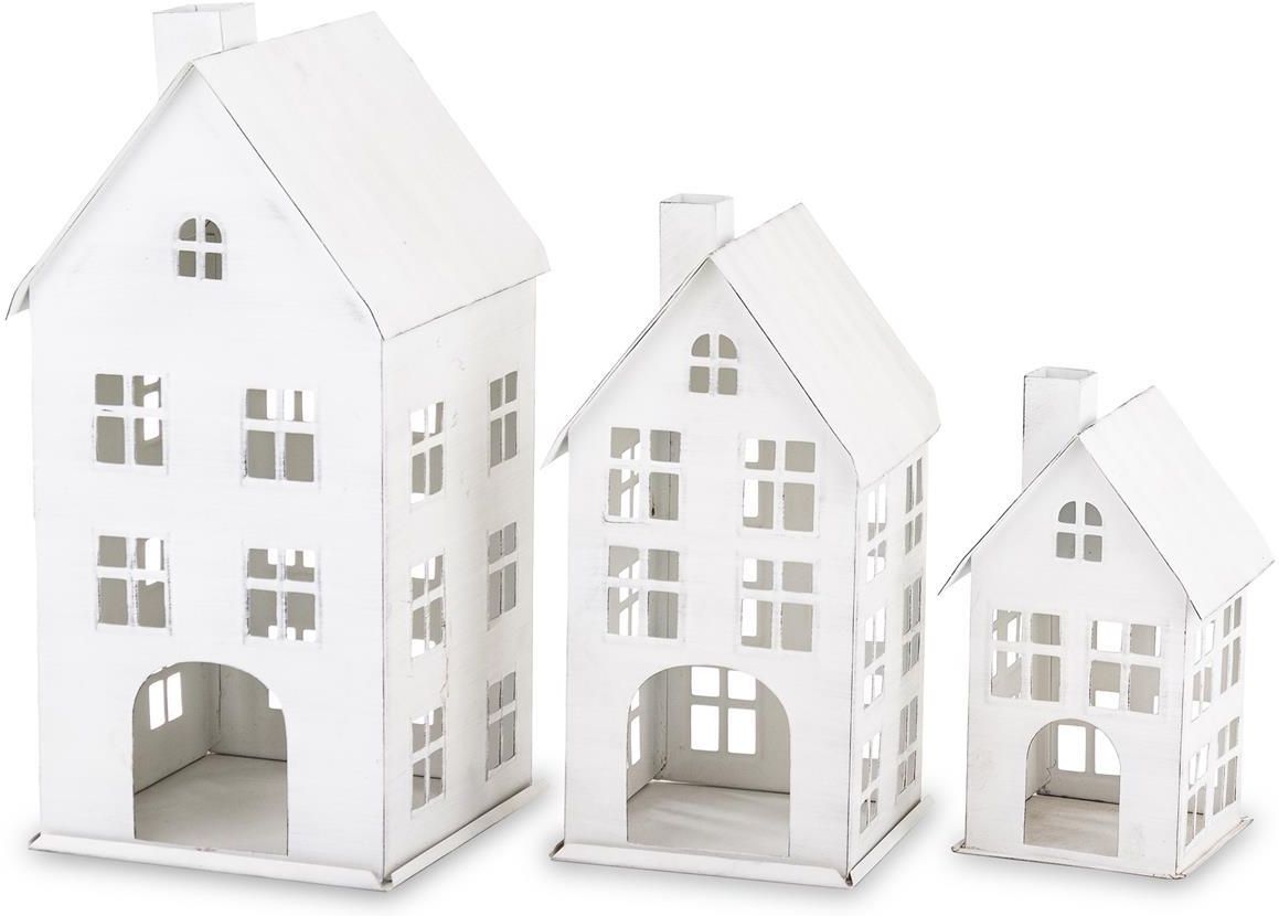 Dekoracja Domek Kpl. 3 Szt. Te dekoracje to nieodłączny symbol Bożego Narodzenia. Ozdoby świąteczne metalowe zostały zaprojektowane, aby sprawić by Twoje wnętrze wyglądało niezwykle efektownie. Doskonale nadają się jako ozdoba wnętrza, dodając mu świątecznego akcentu.Zawieszki i figurki metalowe sprawiają wszystkim wiele radości. Bardzo ciekawe efekty dekoracyjne można osiągnąć, łącząc je ze sobą Cechy produktu Dekoracja o znakomitym designie Dekoracja znajdzie wiele zastosowań w użytkowaniu Stylowa i niebanalna ozdoba Podstawowe dane Kolor: biały Material: metal Rozmiar :38,5x18,5x18,5 30x14,5x14,5 22 Galeria produktu