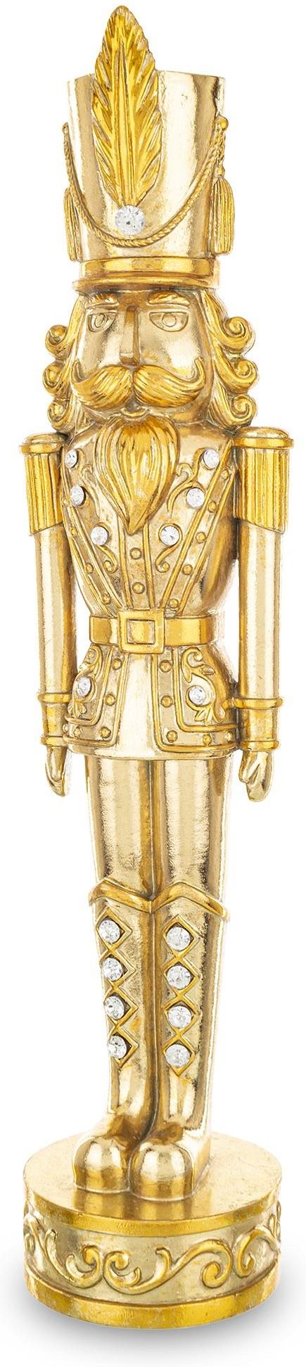 Figurka Dziadek Do Orzechów Dziadek do orzechów to klasyczna postać związana z magią świąt Bożego Narodzenia, a ta figurka jest wspaniałym sposobem, aby wnieść trochę tego uroku do Twojego domu. Może być używana jako ozdoba na stole świątecznym, na półce czy jako element wystroju choinki. Nie czekaj dłużej i spraw sobie lub swoim bliskim radość dzięki tej uroczej figurce dziadka do orzechów. Dodaj ją do koszyka już teraz i ciesz się świątecznymi chwilami pełnymi magii i ciepła. Wysokość: 43 cm Szerokość: 9 cm Głębokość: 9 cm Materiał: Poliresing - mieszanka alabastru, masy żywicznej oraz gipsu Kolor: Wielokolorowy Ta urocza figurka została wytworzona z trwałego poliresingu i pomalowana w pięknych kolorach, co nadaje jej nie tylko wyjątkowego uroku, ale także trwałości. Wzorzyste kolory doskonale komponują się ze szczegółami tej scenki, podkreślając delikatność i piękno chwili, którą przedstawia.