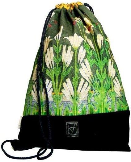 Worek na plecy Fernando Lilia Worek na plecy w kolorze ciemnego granatu z tyłem, ozdobiony oryginalną, unikalną grafiką w pięknych barwach. Na nadruku przedstawiono fragment polichromii autorstwa Stanisława Wyspiańskiego, pochodzącej z bazyliki Franciszkanów w Krakowie. Przestronny, trwały i …