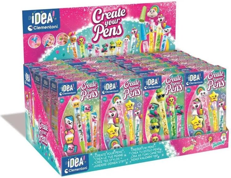Oryginalny zestaw kreatywny służący do złożenia długopisów i ich spersonalizowania przy pomocy różnych ozdób na trzy różne tematy. Praktyczny, wieloelementowy zestaw składający się z: długopisów, tuszy w różnych kolorach, figurek i wszystkich narzędzi potrzebnych do ich wykonania. Koncepcja będąca czymś znacznie więcej niż zwykłym zadaniem ozdobienia swojego długopisu. Teraz można tworzyć, dając upust wyobraźni. Cena dotyczy jednej sztuki. Zabawka występuje w kilku wzorach, wzór wybierany los Wiek: 5+Producent/osoba odpowiedzialna za bezpieczeństwo produktuClementoni SpAZona Industriale Fontenoce SNC62019 Recanatiassistenza@clementoni.it3907175811
