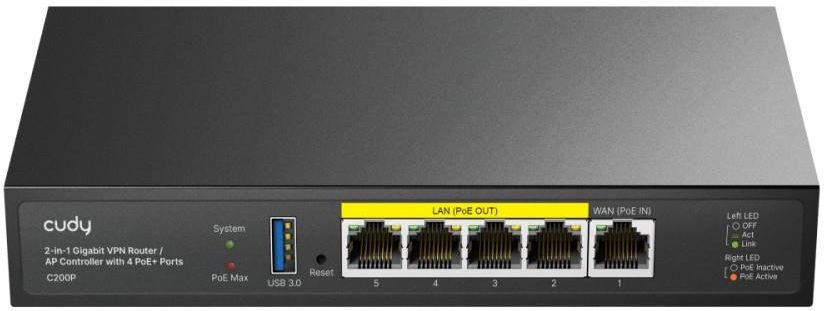Router/kontroler AP 2 w 1 dla małych i średnich firm z 4 portami PoE+ Gigabitowy router pracujący jako kontroler punktów dostępowych Cudy w wymaganiach Wi-Fi w całym domu, wyposażony w cztery wyjścia PoE i funkcje Cudy Mesh. 4× GbE with 802.3at/af Mode A PoE 1× Gigabit Ethernet ... (zobacz więcej)