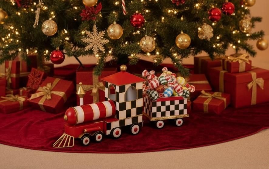 Lokomotywa świąteczna metalowa czarno-czerwona w kratkę Dekoracyjna lokomotywa świąteczna z wagonikiem to oryginalna ozdoba, która wniesie do wnętrza odrobinę retro uroku i radosnej, bożonarodzeniowej atmosfery. Wykonana z metalu, zachwyca starannym wykonaniem i unikalnym wzornictwem. Czarno-biała kratka, czerwone akcenty oraz złote detale tworzą niezwykle efektowne, stylowe połączenie inspirowane klasycznymi ozdobami vintage. Wagonik może pełnić funkcję pojemnika na drobne dekoracje lub słodycze, dzięki czemu figurka łączy funkcjonalność z estetyką. Doskonale prezentuje się na komodzie, stole czy pod choinką, a także jako element witryny lub aranżacji świątecznego okna. To dekoracja, która przypadnie do gustu miłośnikom eleganckich i niebanalnych ozdób bożonarodzeniowych. Idealna również jako pomysł na prezent. Cechy produktu: • materiał: metal • kolorystyka: czarno-biała kratka, czerwone i złote akcenty • elementy: lokomotywa z wagonikiem połączonym łańcuszkiem • styl: klasyczny, retro, świąteczny • zastosowanie: dekoracja wnętrz, ozdoba stołu, komody, półki Zdjęcie aranżacyjne ma charakter poglądowy. Prezentowana aranżacja może zawierać elementy dekoracyjne niewchodzące w skład zestawu. Szczegóły dotyczące zawartości znajdują się w opisie produktu. Metalowa ozdoba w tej formie to świetny pomysł na prezent dla miłośników kolei. Zdjęcie tytułowe ma charakter poglądowy. Prezentowana aranżacja może zawierać elementy dekoracyjne niewchodzące w skład zestawu. Szczegóły dotyczące zawartości znajdują się w opisie produktu.