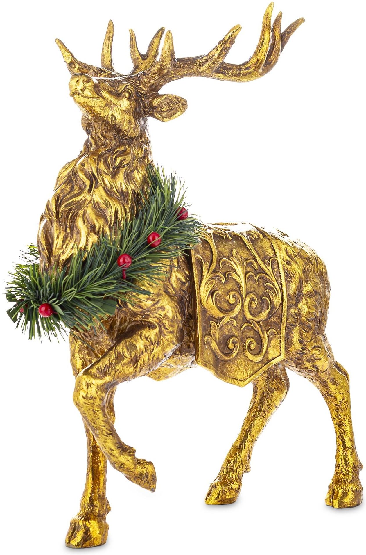 Figurka Jeleń Boże Narodzenie / Figurki i Ozdoby / Kolekcja Antique Rozmiar: 34x14x23 cm Pakowanie: 4/1 Waga: 1.23 kg Materiał: tworzywo sztuczne Kolor: złoty