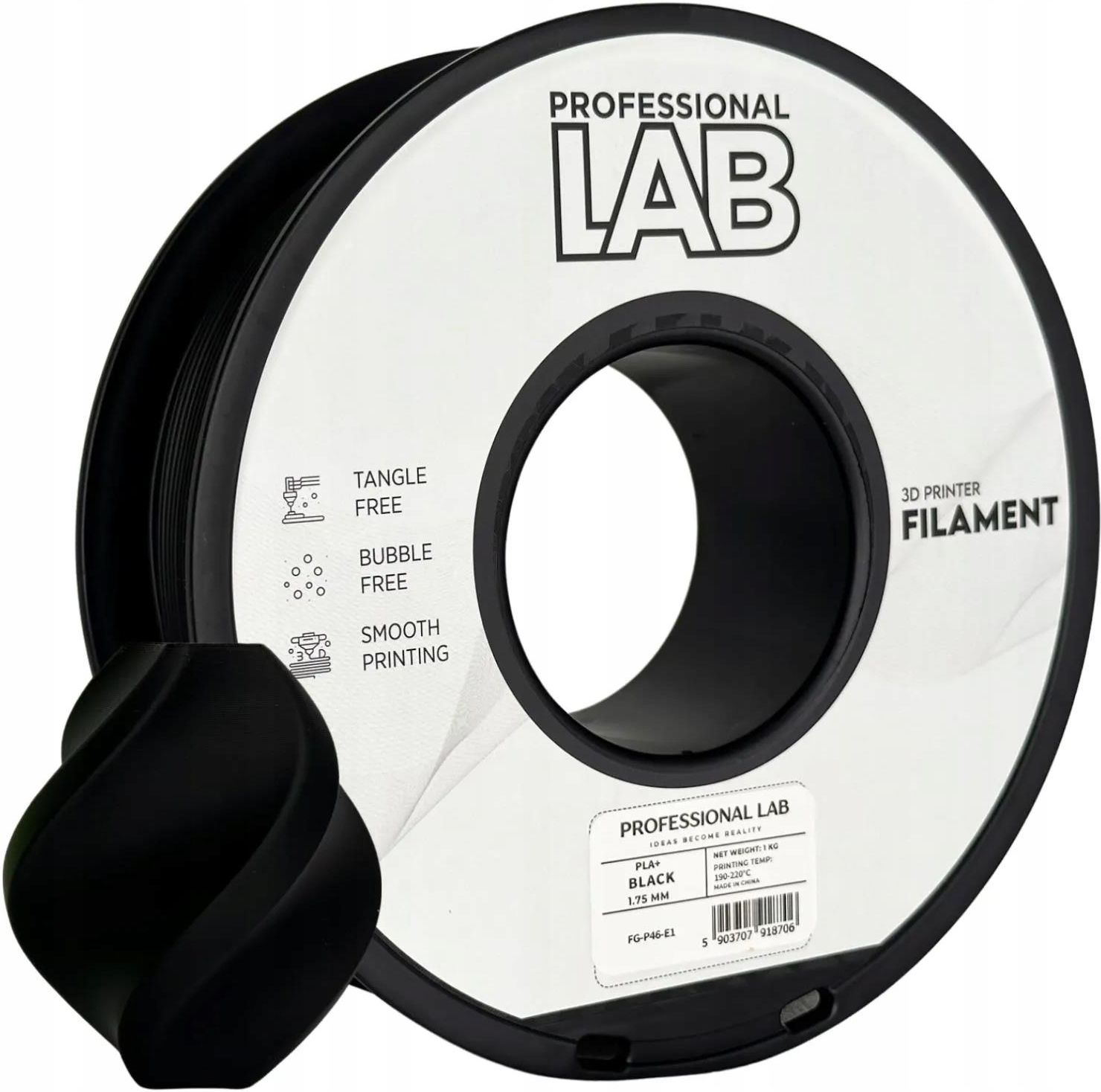 Filament PLA+ Black 1,75 mm – 1 kg | Professional Lab Premium Professional Lab PLA+ Premium w kolorze Black to ulepszona wersja standardowego PLA – mocniejsza, mniej krucha i bardziej odporna na pękanie, przy zachowaniu łatwości druku. Głęboka, matowa czerń nadaje wydrukom elegancki i profesjonalny …