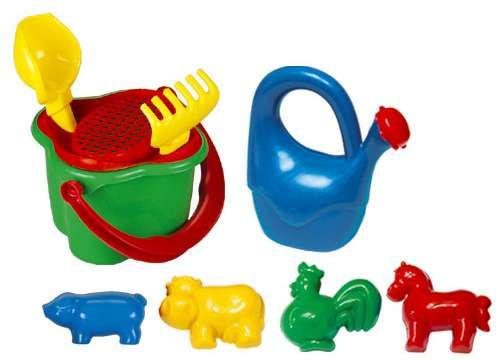 Komplet "Koniczyna" dla małych ogrodników: pełna wygoda i zabawa W skład tego praktycznego i funkcjonalnego Kompletu Koniczyna wchodzi wiaderko "Koniczynka" z sitkiem, łopatka, grabki, a także 4 urocze foremki w kształcie zwierzątek oraz konewka "Fasolka". To idealne wyposażenie do zabawy na świeżym powietrzu dla każdego Małego Ogrodnika! Jest to zestaw niezwykle lekki oraz mały, więc zabierając go w podróż, nie musisz się martwić o jego ściskanie czy ważenie. Dzięki temu, można go zabrać na plażę, do ogrodu czy na podwórko, by umilić czas dzieciom podczas zabawy w piasku czy przy pracach ogrodowych. Komplet Koniczyna cechuje się również wyjątkowym designem, zwracającym uwagę swoimi kolorami i kształtami. Jego poszczególne elementy są dla dziecka przyjemne w dotyku, a także łatwość ich uchwytu i zabawy sprawia, że stają się ulubionymi narzędziami maluchów. EAN: 5900992000826