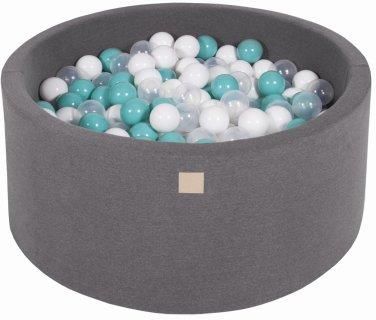 Meowbaby Okrągły Suchy Basen Z Piłeczkami 7cm Dla Dziecka 90X40cm 300 Piłek Bawełniany Ciemnoszary Turkusowe Transparentne Białe Meo162Pl Nowy Wiśnicz