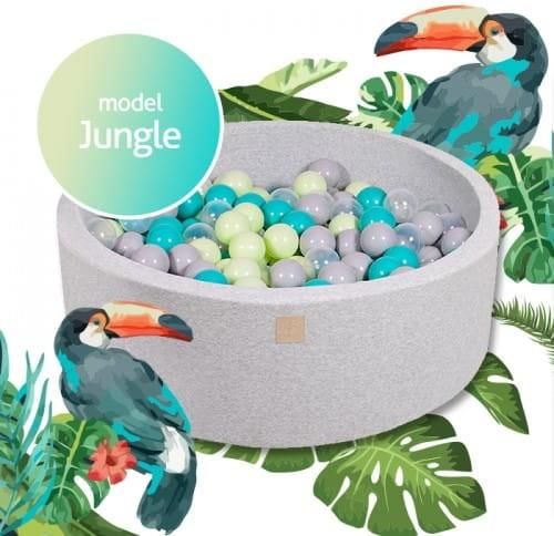 Okrągły Basen z 250 piłkami 90x30cm, Jasnoszary, Cotton, Model Jungle MeowBaby MeowBaby® Suchy Basen z Kulkami 30cm, Model Jungle To gotowy zestaw - basen + piłeczki, aż 250 sztuk! Kolory piłeczek: miętowe, szare, turkusowe Suchy basenik z kolorowymi kuleczkami to prawdziwy bestseller wśród dzieci! Kto nie lubi pływać i nurkować w piłkach? Nasze baseny z piłkami zostały zaprojektowane z myślą o najmłodszych. Idealnie sprawdzają się podczas zabawy, jak również są niezwykle przydatne w terapii integracji sensorycznej. Dziecko w zależności od wieku, podczas zabawy piłeczkami ćwiczy umiejętności motoryczne, umacnia chwyt, poznaje kolory oraz rozwija koordynację wzrokowo-ruchową. Piłeczki do suchego basenu mają idealnie okrągły kształt, dzięki czemu mieszczą się w dłoni dziecka. Suchy basen MeowBaby® został wykonany z miękkiej antyalergicznej pianki, co gwarantuje bezpieczną i radosną zabawę Twojego Dziecka. Delikatna kolorystyka pokrowca sprawia, że wkomponowuje się on w wystrój wnętrz zarówno klasycznych, jak i nowoczesnych. Pokrowiec basenu z piłeczkami jest zapinany na zamek, co umożliwia pranie w pralce, dzięki czemu utrzymanie zabawki w czystości nie sprawia trudności. Suchy basen z kulkami - cechy średnica: 90cm* wysokość basenu: 30cm, grubość ścianki: 5cm, grubość dna: 2cm, stabilne boki oraz dno wykonane z antyalergicznej pianki poliuretanowej (certyfikat Oeko-Tex). Pokrowiec basenu z kulkami zapinany na zamek błyskawiczny, można prać w pralce w 30°C, przyjemna w dotyku dzianina (certyfikat Oeko-Tex),ciemnoszary: 45,6% poliester, 49,4% bawełna, 5% elastan,jasnoszary: 60% bawełna, 35% poliester, 5% elastan,pudrowy róż, miętowy, czarny, szary i miętowy w gwiazdki: 95% bawełna, 5% elastan. Piłeczki do suchego basenu bezpieczne - posiadają certyfikat CE, dostępna średnica piłeczek: 7 cm, błyszczące, elastyczne, nietoksyczne, niepękające, bez zapachu, Warto pamiętać! Baseniki MeowBaby® są szyte w Polsce, przy użyciu atestowanych polskich tkanin wysokiej jakości. Piłeczki pochodzą od krajowego producenta, który stosuje w produkcji jedynie nietoksyczne materiały, bezpieczne dla dzieci. *W związku z tym, że każdy basenik jest wykonywany ręcznie, jego średnica może nieznacznie się różnić od tej podanej w specyfikacji (+/- 5cm).