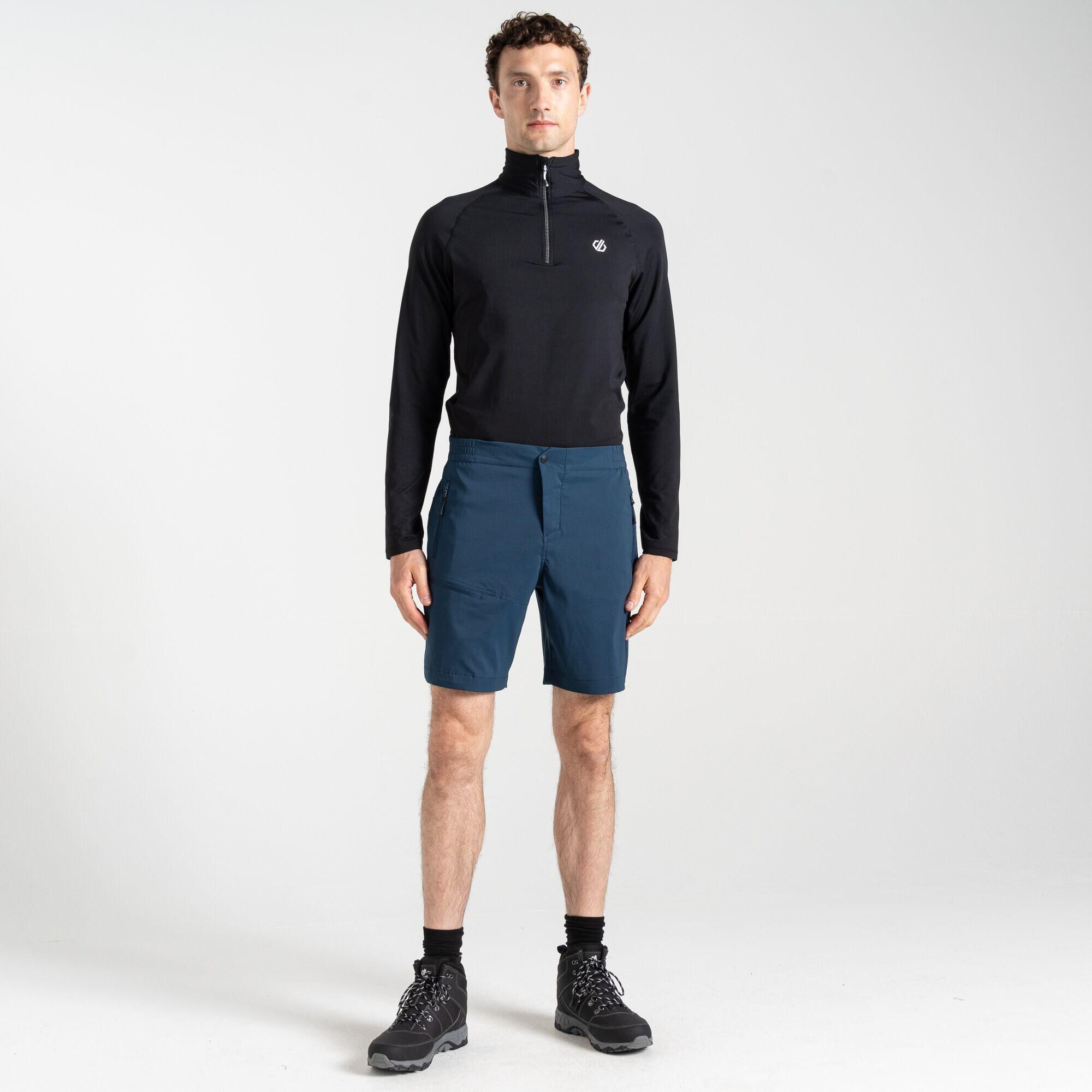 Dare 2b - Męskie spodenki Mountain Series Męskie szorty Mountain Series. Nasze męskie szorty trekkingowe są wykonane z poliestru z recyklingu i elastanu, aby zagwarantować długotrwałą rozciągliwość i wygodę w ruchu na świeżym powietrzu w słoneczne dni. Gdy pada, hydrofobowa warstwa pozwala utrzymać suchość. Częściowo elastyczny pas ułatwia ruchy. Mają ochronę UV50+. Tkanina z poliestru/elastanu pochodzącego z recyklingu Wodoodporne wykończenie Częściowo elastyczny pas Zamek błyskawiczny Wiele kieszeni, w tym kieszenie zasuwane Ochrona przed promieniowaniem UV (UPF) 50+