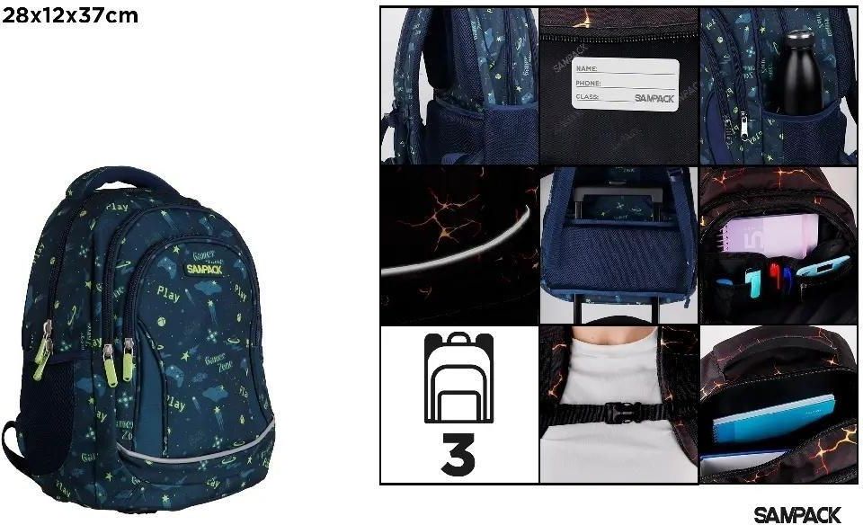 Plecak trzykomorowy Play granatowy 28x12x37cm