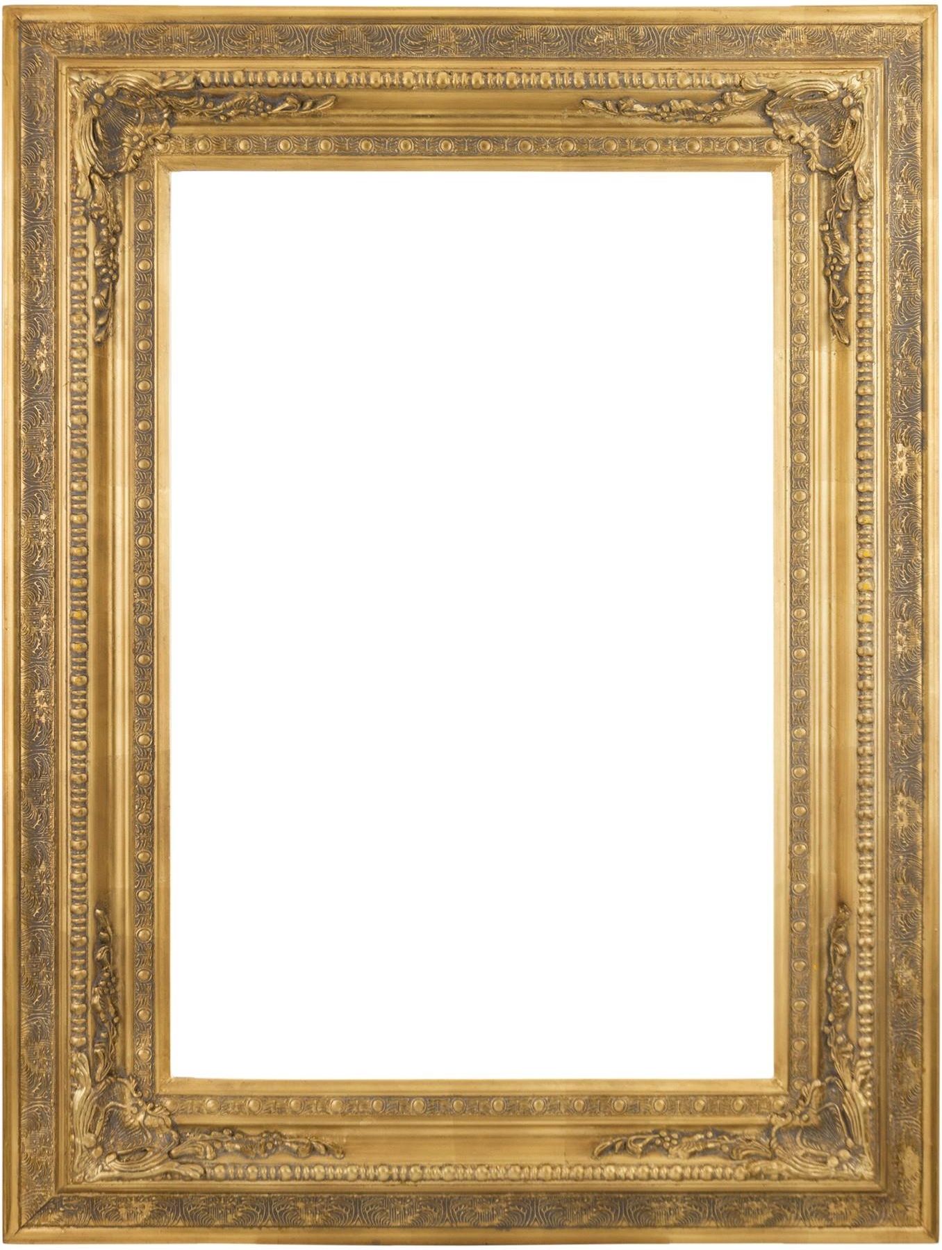 Rama Złota Rozmiar: 120 x 90 x 6 cm. Materiał: drewno, zdobienia stiuk Kolor: złoty
