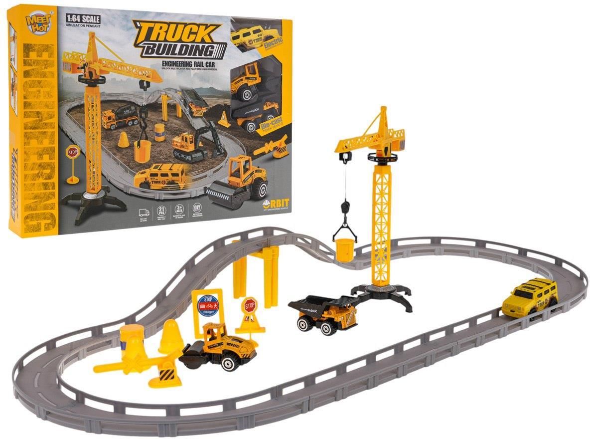 Opis Tor Wyścigowy Wersja Budowa Bogato wyposażony zestaw tor z autkami budowlanymi i dźwigiem dla dzieci od 3-go roku życia. Zestaw składa się z 21 elementów do samodzielnego złożenia. Wykonany został z najlepszej jakości plastiku. Tory posiadają barierki zabezpieczające autka przed wypadaniem. Dźwig wyposażono w ruchome elementy takie jak obrotowe ramię o 360 stopni i opuszczany hak z załadunkiem (manualnie na korbkę). W zestawie znajdują się 3 autka budowlane takie jak: wywrotka, walec i autko elektryczne. Koparka i walec posiadają metalową karoserię oraz ruchome elementy. Walec posiada ruchomy i obrotowy bęben, a wywrotka podnoszoną i opuszczaną przyczepę. Autko elektryczne zasilane jest bateriami typu 1 x AA 1,5 V (brak w zestawie). Funkcje zestawu przeznaczony dla dzieci od 3-go roku życia, wykonany z najlepszej jakości materiałów, zestaw składa się z 21 elementów do samodzielnego montażu, ruchome elementy zestawu: dźwig z obrotowym ramieniem i ruchomym hakiem, podnoszona przyczepa wywrotki, ruchomy bęben walca, szlaban, 2 pojazdy posiadają metalową karoserię, autko elektryczne jeździ automatycznie, autka wykonane w skali 1:64. Wymiary zestaw po złożeniu ok. 35 cm x 78 cm x 9 cm, autka ok. 8 cm x 4 cm x 4 cm, dźwig ok. 25 cm x 22 cm x 11 cm, opakowanie ok. 37 cm x 26,5 cm x 6 cm. Zawartość zestawu tory z barierkami zabezpieczającymi, dźwig, 3 autka, podpórka pod tor, 2 pachołki, 3 znaki, szlaban, beczka, naklejki dekoracyjne.