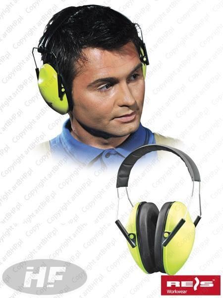 Ochronniki słuchu OSL w seledynowym kolorze z czarnymi dodatkami. wygłuszenie: H=32 dB, M=23 dB, L=14 dB, SNR=26 dB materiał muszli usznych: ABS kabłąk o regulowanej długości nauszniki w jaskrawym kolorze co zwiększa widoczność użytkownika polecane dla drogowców, jak również wykorzystywane przez uczniów w szkołach norma EN352-1 Polecane dla branż Logistyka w tym transport i przeładunek Obróbka metali, operatorzy maszyn i urządzeń Prace budowlane i montażowo-instalacyjne Budowa i remont dróg Przemysł ciężki m.in. odlewnie, spawalnictwo itp... Przemysł samochodowy, w tym mechanika i naprawa pojazdów Przemysł wydobywczy w tym górnictwo Rolnictwo, ogrodnictwo, leśnictwo w tym wycinka i pielęgnacja roślin Rzemiosło w tym obróbka szkła, ceramiki drewna itp... Całkowite wygłuszenie to wskaźnik SNR Należy pamiętać iż dopuszczalny maksymalny poziom hałasu w jakim można pracować 8 godzin dziennie, bez uszczerbku na zdrowiu to 85 dB. Sposób użytkowania Ochronniki słuchu muszą w sposób pełny obejmować uszy i dokładnie przylegać do głowy. Należy wyregulować ustawienia pałąka tak, aby słuchawki wywierały równomierny nacisk wokół uszu i zapewniały jak największe tłumienie dźwięków. Spod słuchawek należy odgarnąć włosy. Nie należy zakrywać uszu, wkładać za ucho ołówka ani żadnych przedmiotów, które mogą obniżyć szczelność. Konserwacja i czyszczenie Słuchawki można czyścić ciepłą wodą z mydłem oraz dokładnie płukać. Nie należy używać alkoholu ani rozpuszczalników. Poduszki uszczelniające wymagają wymiany zwykle co najmniej dwa razy w roku lub częściej, jeśli staną się zbyt sztywne, pękną lub nie zapewniają pełnego uszczelnienia. Nie należy w żaden sposób modyfikować, a zwłaszcza rozciągać lub używać w nieprawidłowy sposób pałąka, gdyż mogłoby to obniżyć stopień ochrony. Przykłady źródeł hałasu OBRAŻENIA 150 dB - Hamownia silników odrzutowych 140 dB - Startujący samolot odrzutowy 130 dB - Wystrzał pistoletowy, Młot pneumatyczny 120 dB - Samolot o napędzie śmigłowym, Piła mechaniczna, Prasa do metalu 110 dB - Nitownica, Gwoździownica, Roboty strzelnicze, Spust surówki ZAGROŻENIE 100 dB - Wylewanie betonu, Obora podczas karmienia, Piaskowanie 90 dB - Ciężarówka, Przemysł spożywczy - butelkowanie, Przemysł spożywczy - pakowanie, Piła taśmowa, Pracujący młynek mielący BEZPIECZEŃSTWO 80 dB - Wzmożony ruch uliczny,Głośno grające radio,Odkurzacz 70 dB - Jadący samochód 60 dB - Odgłosy pracy biura Norma EN352-1 Ochronniki słuchu. Wymagania ogólne. Część 1: Nauszniki przeciwhałasowe. Część pierwsza normy określa wymogi w zakresie budowy, projektowania i charakterystyki technicznej, metody badań, przepisów dotyczących znakowania oraz informacji przeznaczonych dla użytkowników. Według wytycznych normy nakazane jest udostępnienie informacji odnoszących się do charakterystyki wytłumienia akustycznego ochronników słuchu mierzonego zgodnie z normą EN24869-1. UWAGA: Część pierwsza normy nie odnosi się ani do ochronników przeznaczonych do mocowania w hełmach lub będących elementem hełmu, ani do charakterystyk technicznych urządzeń elektronicznych, które mogą być wbudowane wewnątrz ochronników słuchu. Normy nie należy również stosować do określania parametrów technicznych ochronników chroniących przed hałasem impulsowym. UWAGA: Możliwe jest zastosowanie równocześnie ochronnika słuchu oraz zatyczek. Efektywne wygłuszenie w takim wypadku jest sumą wygłuszeń poszczególnych rodzajów ochron stosowanych równocześnie. OSL-