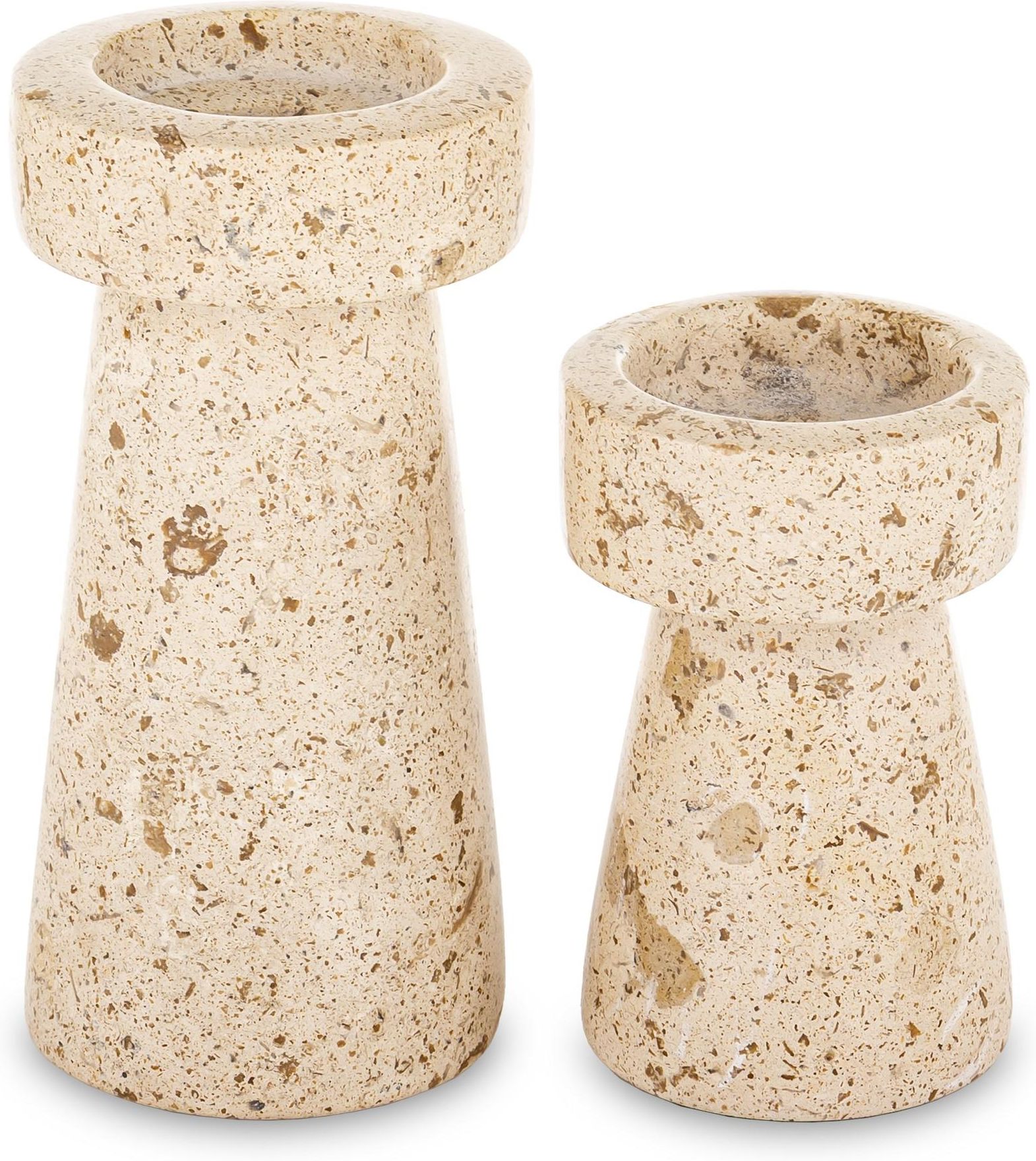 Świecznik Kpl. 2 Szt. Szkatułki, Ramki i Tace / Kolekcja Marble Rozmiar: 13x6,5x6,5, 9x6x6 cm Pakowanie: 6/1 Waga: 1.28 kg Materiał: trawertyn Kolor: bezowy