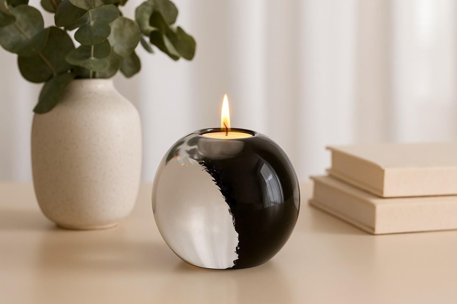 Świecznik kula na t-light 13 cm czarno-biały Nowy Wiśnicz