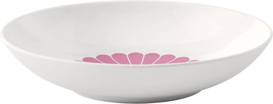 Miska do makaronu (różowa) Fleur Villeroy & Boch Podstawowe informacje Marka: Villeroy & Boch Kod produktu: 1045533381 Kolor: różowy Materiał: porcelana Premium Wymiary: 24 x 5,1 cm (śr. x wys.) Pojemność: 0,62 l • Uniwersalna miska do drugiego dania. • Pojemność ok. 620 ml. • Wykonana z porcelany premium. • Na dnie wzór kwiatu w różowym kolorze. • Odpowiednia do mikrofali. • Nadaje się do zmywarki.
