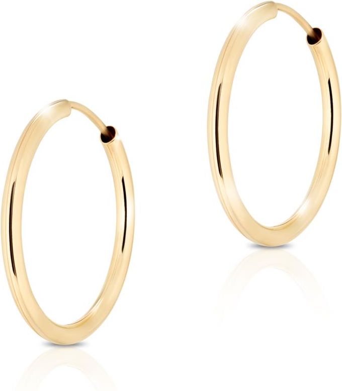 Złote kolczyki wykonane ze złota próby 585 (14k) Idealny prezent z okazji urodzin, imienin, rocznicy, walentynek, świąt i wielu innych okoliczności. Parametry: Średnica: ok. 22 mm Grubość: ok. 2,3 mm Waga: ok. 1,8-2,0 g Rodzaj zapięcia: szarnir Wagi i wymiary podane wyżej mogą się nieznacznie różnić w zależności od partii produkcyjnej. Wszystkie nasze produkty wykonane są z najwyżej jakości złota próby 585 (14k). Potwierdzeniem jest metka oraz nabity imiennik lub cecha probiercza (cecha dla produktów powyżej 1 g zgodnie z ustawą o prawie probierczym). Każdy produkt zakupiony u nas opatrzony jest metką jubilerską wysokiej jakości. Możesz dokupić opakowanie ozdobne, a nawet pudełko z grawerem.