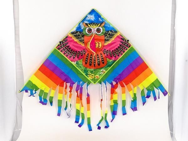 Duży latawiec z grafiką kolorowej sowy. Bardzo szybki montaż latawca. Lekki i łatwy w sterowaniu. Wykonany z wytrzymałych materiałów, posiada metalowy stelaż. Świetna rozrywka na dworze. Latawiec zapakowany w folie. Wymiary opakowania: 80x9x2cm.Wiek: 7+.