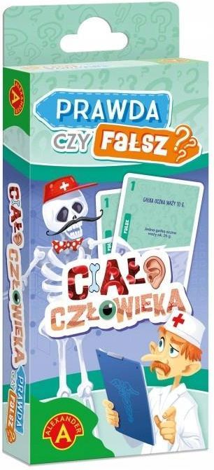 PRAWDA CZY FAŁSZ - CIAŁO CZŁOWIEKA Prawda czy Fałsz - Ciało Człowieka od firmy Alexander to zaskakująca gra, w której musisz wykazać się wiedzą lub… intuicją. Czy ludzkie serce ma aż cztery komory? Zagraj i sprawdź to! Nie uwierzysz w to, co usłyszysz! Grę zaczyna najmłodszy gracz, a następnie …