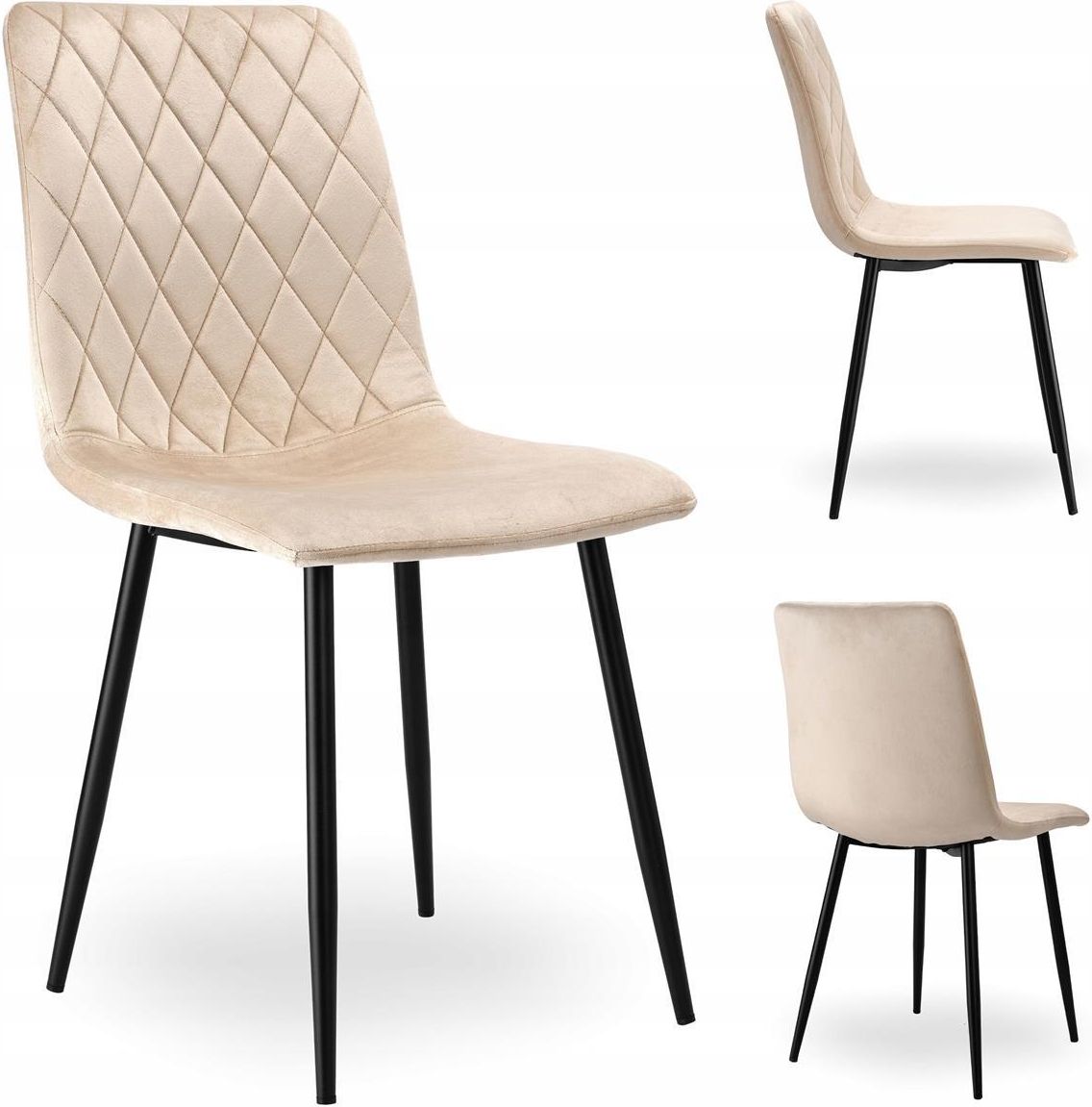 Krzesło Do Jadalni Salonu TURIN beż aksamit nogi czarne 1szt. Nysa