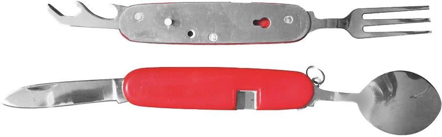 Niezbędnik BCB składany czerwony to turystyczny zestaw sztućców w formie szwajcarskiego scyzoryka. Niezbędnik to popularna nazwa składanego zestawu sztućców, który jest powszechnie wykorzystywany przez żołnierzy, harcerzy, turystów, a także miłośników survivalu i airsoftu. Niezbędnik BCB przypomina szwajcarski scyzoryk oficerski, w którym oprócz gładkiego ostrza znajdują się dodatkowo łyżka, widelec oraz otwieracz do konserw i butelek. Narzędzie ma składaną konstrukcję, którą można szybko i łatwo rozdzielić na dwie części, otrzymując w ten sposób osobne sztućce: widelec i nóż z łyżką. Rozłożenie niezbędnika jest łatwe, wymaga jedynie rozsunięcia okładzin wzdłuż własnej osi. Szkielet wewnętrzny i sztućce wykonano ze stali nierdzewnej, która nie przenosi smaku i zapachu. Plastikowe okładziny o czerwonej kolorystyce ułatwiają odszukanie niezbędnika w trawie lub plecaku. Funkcje i narzędzia: łyżka, widelec, ostrze gładkie, otwieracz do konserw i butelek, stalowe kółko na linkę zabezpieczającą. DANE TECHNICZNE Dane podstawowe Czy składany? tak Funkcje; otwieracz do konserw , otwieracz do butelek , nóż , widelec , łyżka Dane dodatkowe Ilość funkcji 5 Typ materiału; stal nierdzewna , plastik Wymiary; Masa [g] 87 Informacje producenta EAN 5016543002239 Symbol dostawcy CN223