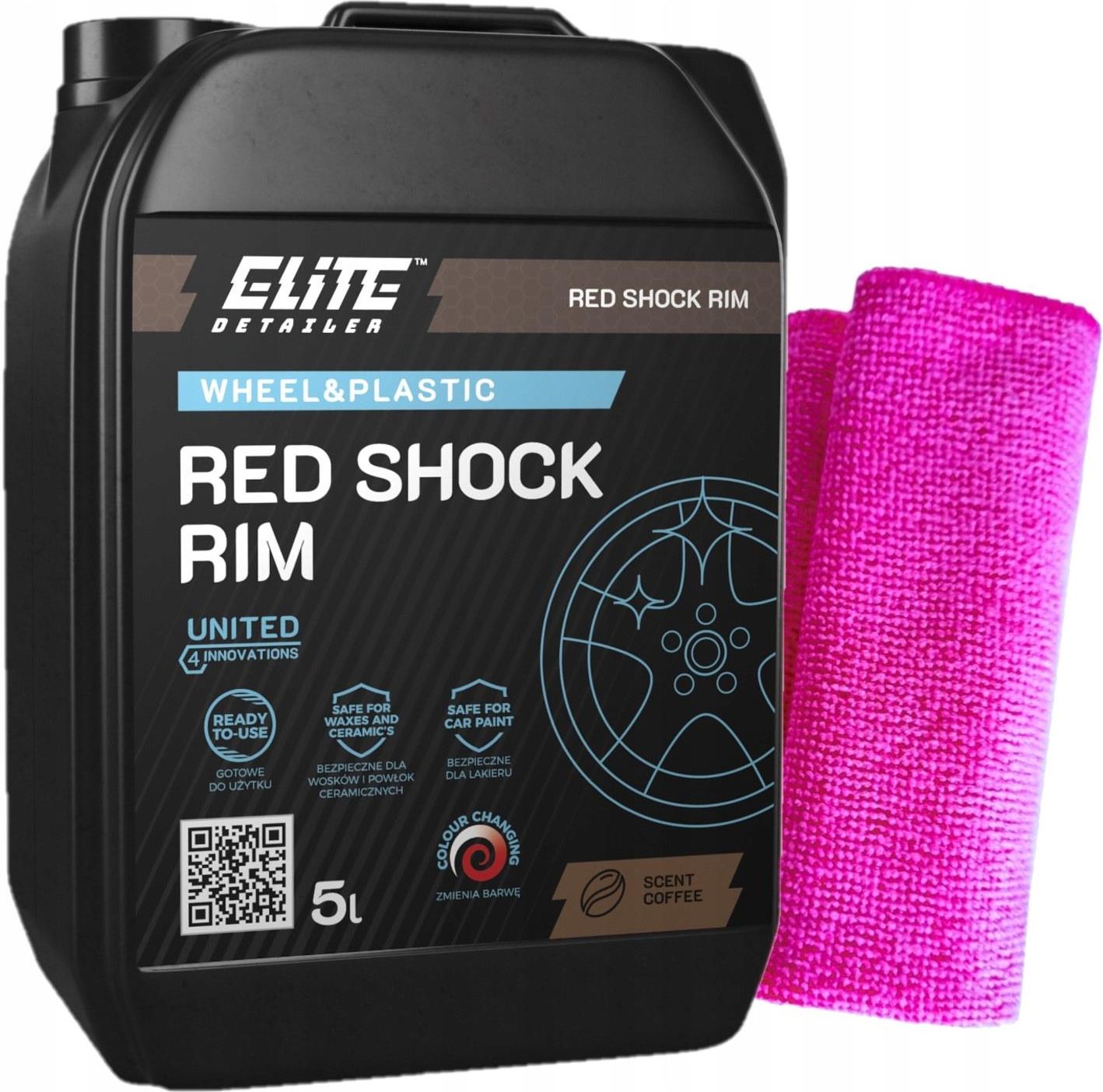 Red Shock Rim 5L TWORZY EFEKT KRWAWIENA FELG Preparat perfekcyjnie czyści obręcze kół wykonane z aluminium, chromu, niklu, a nawet lakierowane felgi Usuwa naloty z klocków hamulcowych oraz pył powstały podczas codziennej jazdy Środek barwi felgę na krwistoczerwony kolor w momencie wejścia …