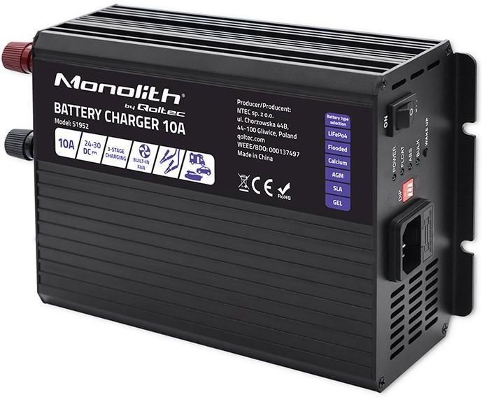 Qoltec Ładowarka Inteligentna Monolith Do Akumulatorów Lifepo4 Agm Gel Sla | 10A 24V Nysa