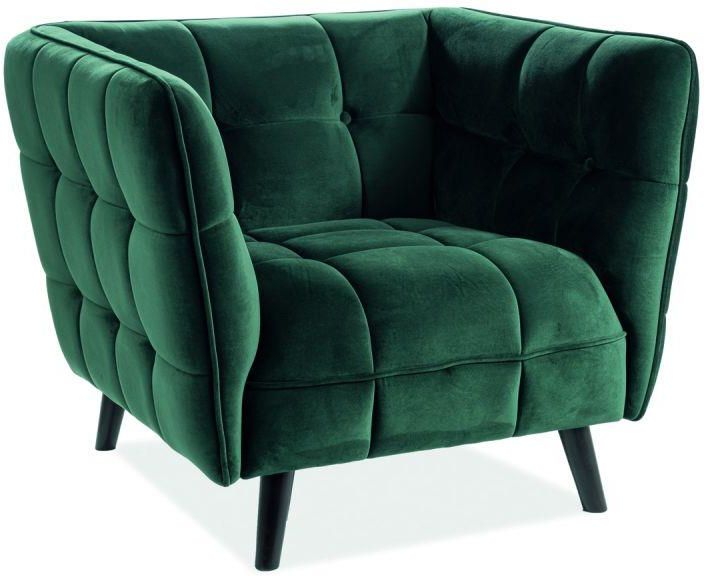 FOTEL CASTELLO 1 VELVET ZIELONY BLUVEL 78 / WENGE Stylowy fotel tapicerowany Castello Velvet 1 Signal swoim kształtem i oryginalnymi pikowaniami nadaje wnętrzu wysokiej elegancji. Wygodny kształt, miękkie wypełnienie i subtelna, delikatna w dotyku tkanina aksamit. Wszystkie te cechy sprawiają że …