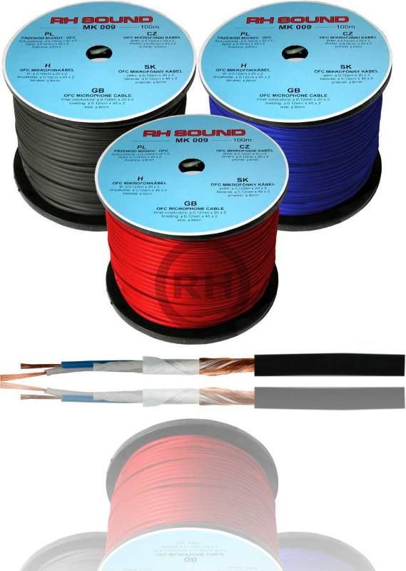 Przewód mikrofonowy symetryczny, średnica 6 mm, kolor niebieski. Sprzedaż w rolkach 100 m.